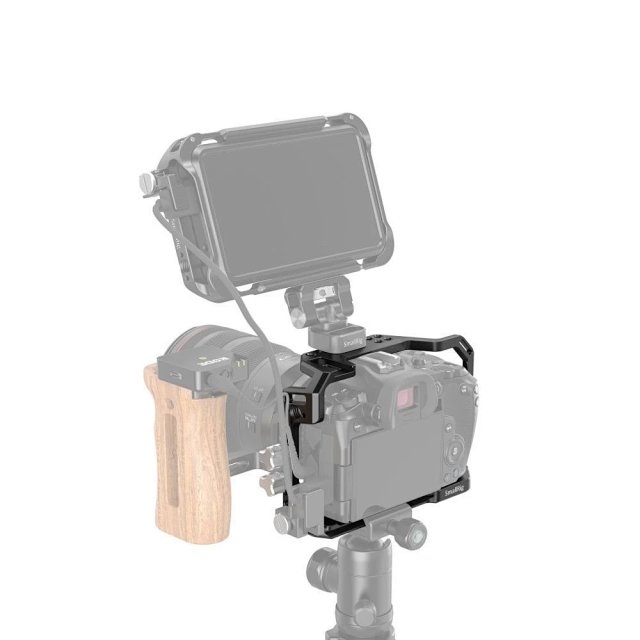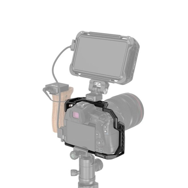 SmallRig佳能EOS R专用兔笼CCC2803在保护机身的同时,提供丰富的拓展接口安装配件。通过一颗1/4螺丝和两颗防偏转定位柱来固定相机,避免松动。